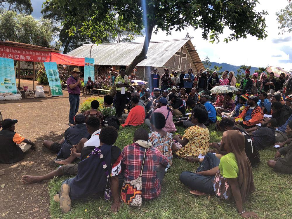 2020年12月15日,中國專家在巴布亞新幾內(nèi)亞東高地省中國援助巴新菌草和旱稻技術(shù)項目第9期培訓(xùn)班上授課。